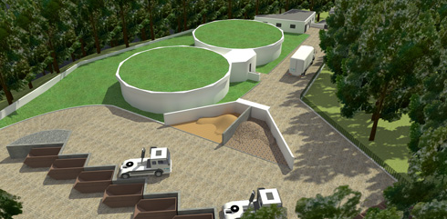 O parque de resíduos será composto por diferentes áreas para a armazenamento temporário das diversas tipologias de resíduos, por um edifício de apoio e por áreas exteriores.