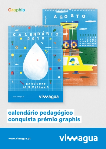 A edição de 2019 dos prémios Graphis atribuídos na passada sexta-feira, dia 29 de junho, em Nova Iorque, distinguiu o calendário ilustrado “Detetive Caça-Gotas”, editado pela Vimágua e produzido pelo estúdio OOF Design. Os prémios Graphis são atribuídos anualmente, desde 1952, aos melhores projetos de design, fotografia, ilustração e publicidade de todo o mundo. O galardão “Design Annual” integra a competição da Graphis que premeia anualmente trabalhos reveladores de especial talento na categoria de design de comunicação.