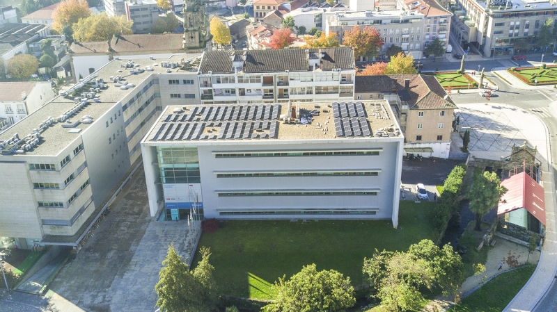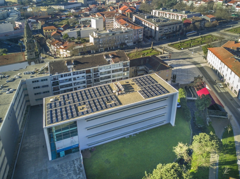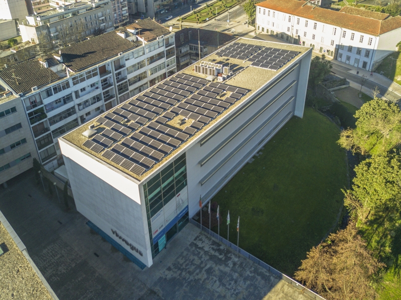 Importa ainda referir que os painéis foram instalados na cobertura do edifício, sendo o sistema constituído por 148 painéis, com uma potência total instalada de 43 KWp, ou seja, igual à potência consumida por 11 habitações familiares, e suprirá, entre outras necessidades, a iluminação, a climatização, o sistema informático e o carregamento dos veículos elétricos.